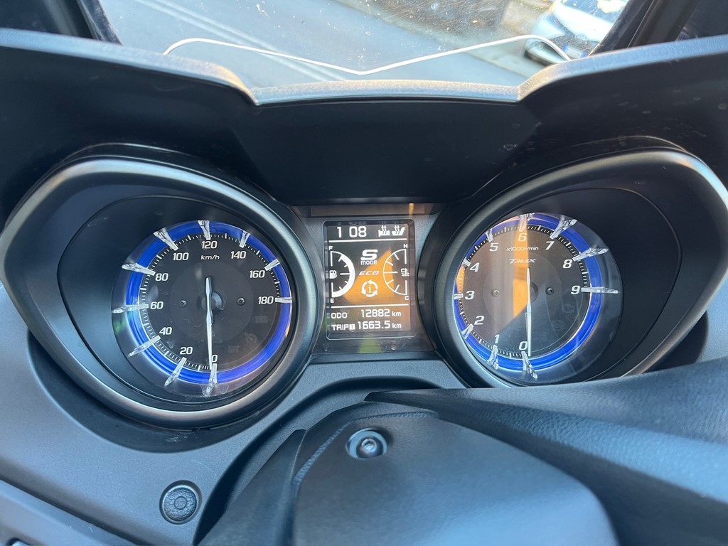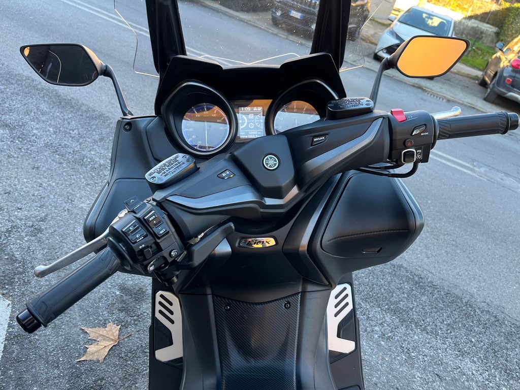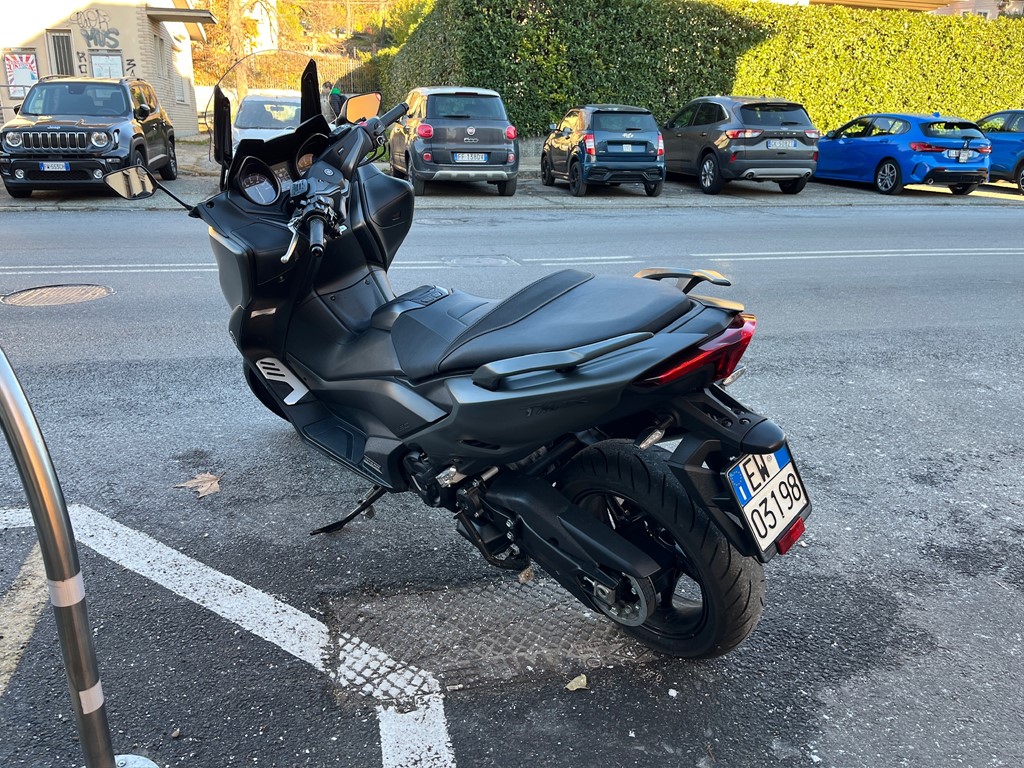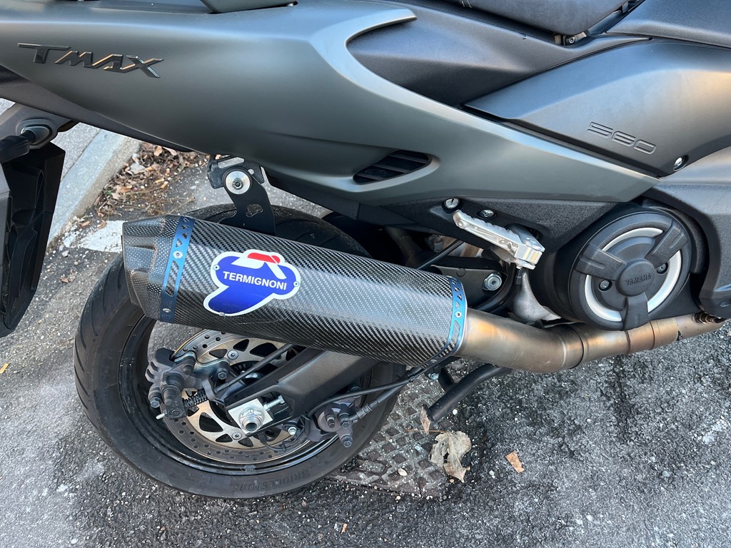 Yamaha T-Max 560 in allestimento Tech Max, equipaggiato con scarico Termignoni che esalta il suo carattere sportivo e il sound distintivo.